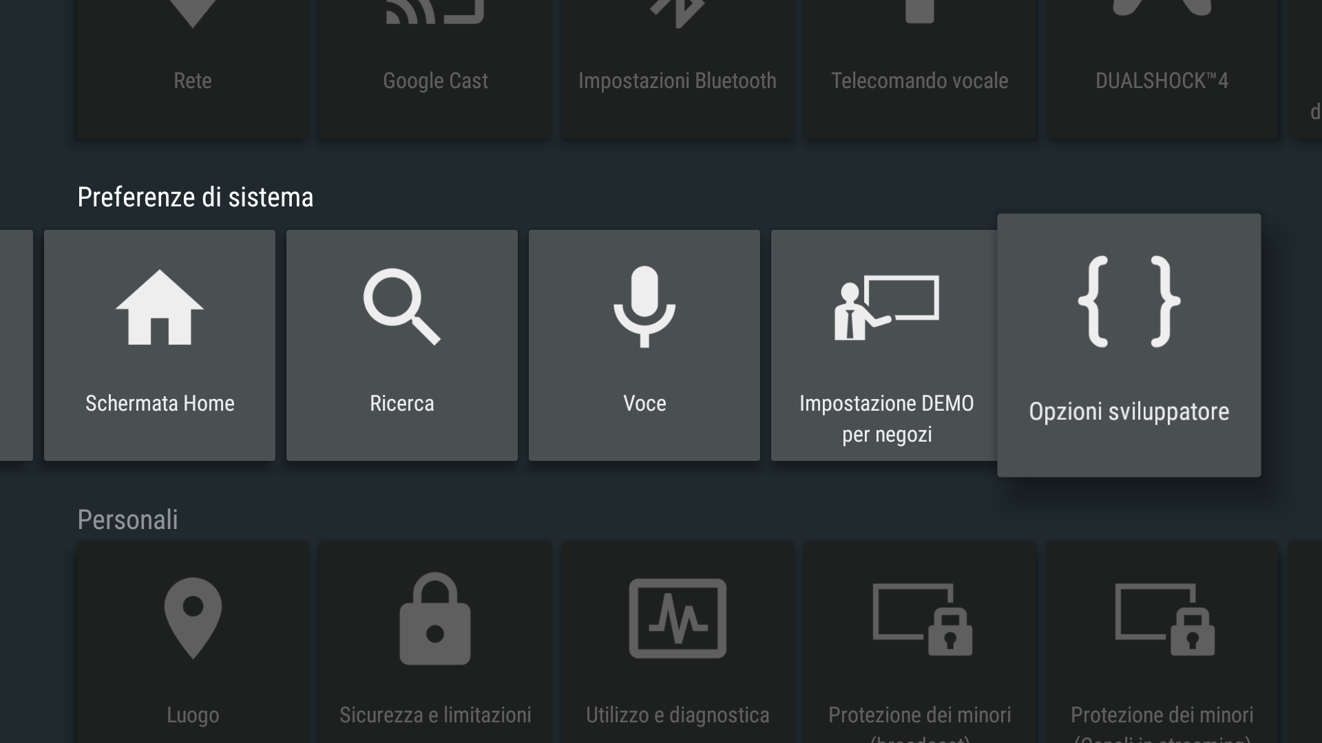 Dulcis in fundo una piccola nota da hacker in erba: andando nel menu impostazioni > info, poi selezionando in basso l’ultima voce dedicata al dettaglio del firmware, basta premere il tasto ok sul telecomando fino a che appare un messaggio che sancisce l’attivazione della modalità sviluppatore. A questo punto comparirà una sezione apposita alla fine della terza riga del menu principale, all’interno della quale è possibile attivare ad esempio l’accesso remoto, e quindi con Android Studio o installando il pacchetto ADB via terminale, è possibile accedere alla TV collegati alla stessa rete ed eventualmente scattare screenshot in presa diretta, con una tastiera USB o sotto Monitor > Capture a Screenshot.